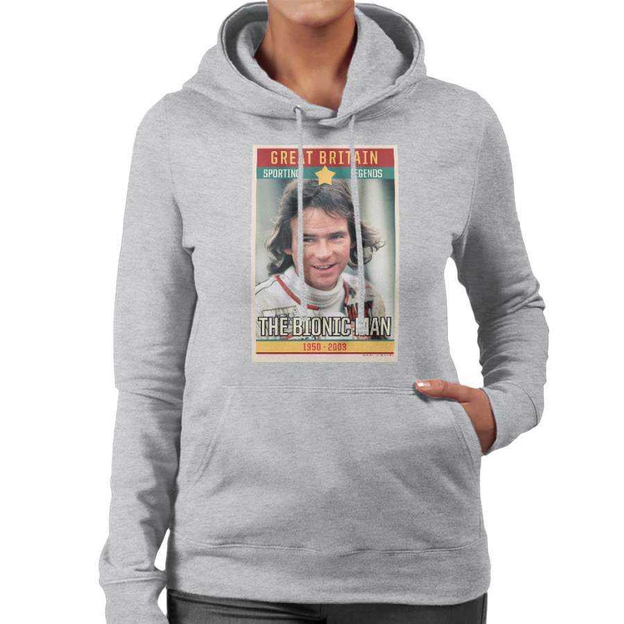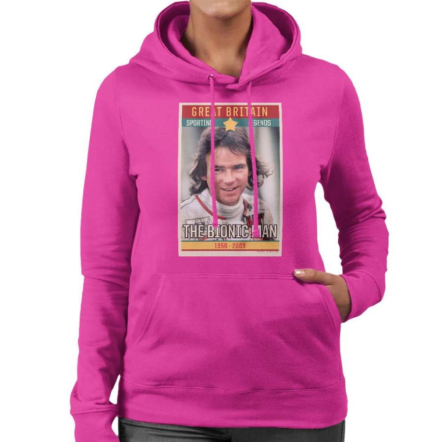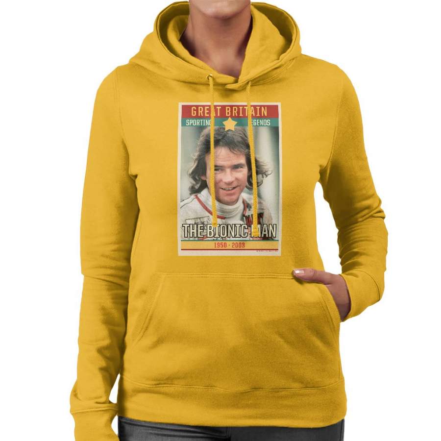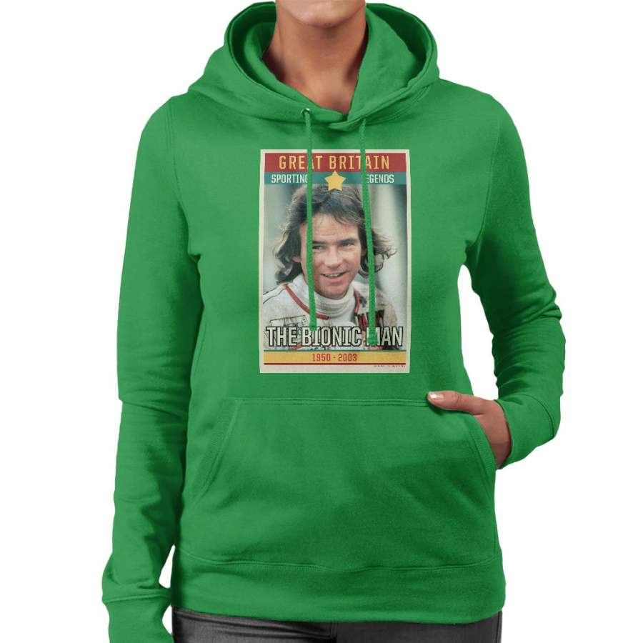 Sporting Legend Poster UK Barry Sheene Bionic Man World Motor Cycle Champion 1977 Women’s Hooded Sweatshirt