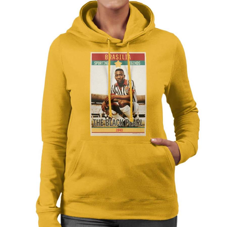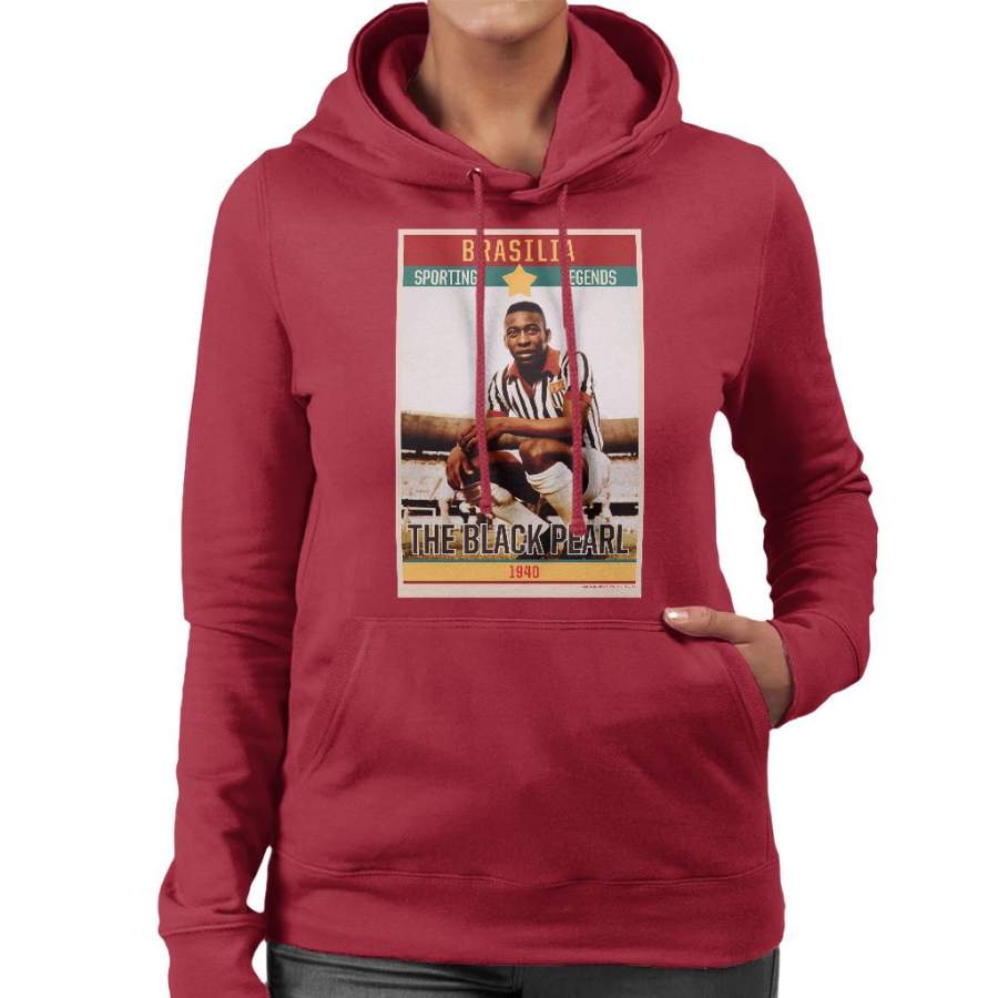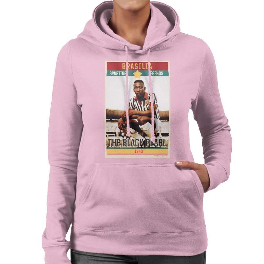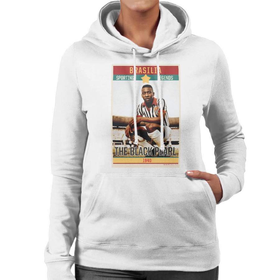 Sporting Legends Poster Brazil Pele The Black Pearl World Cup Women’s Hooded Sweatshirt