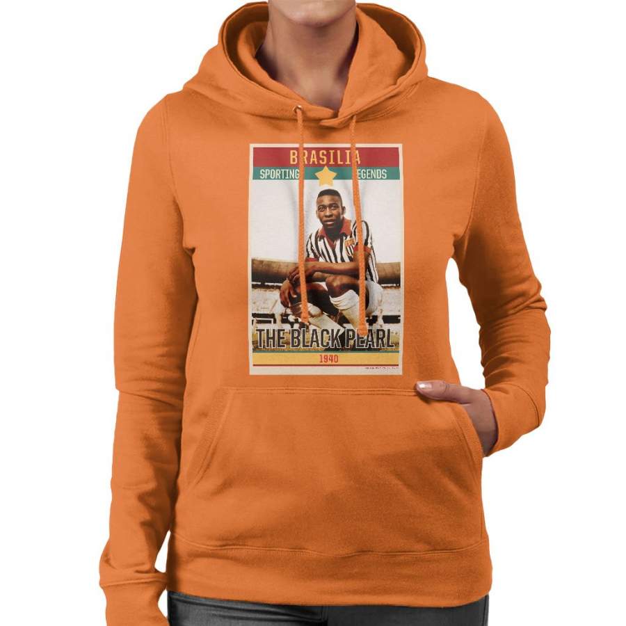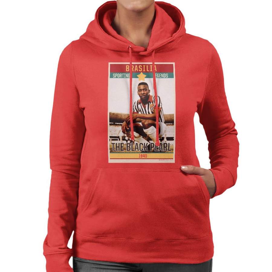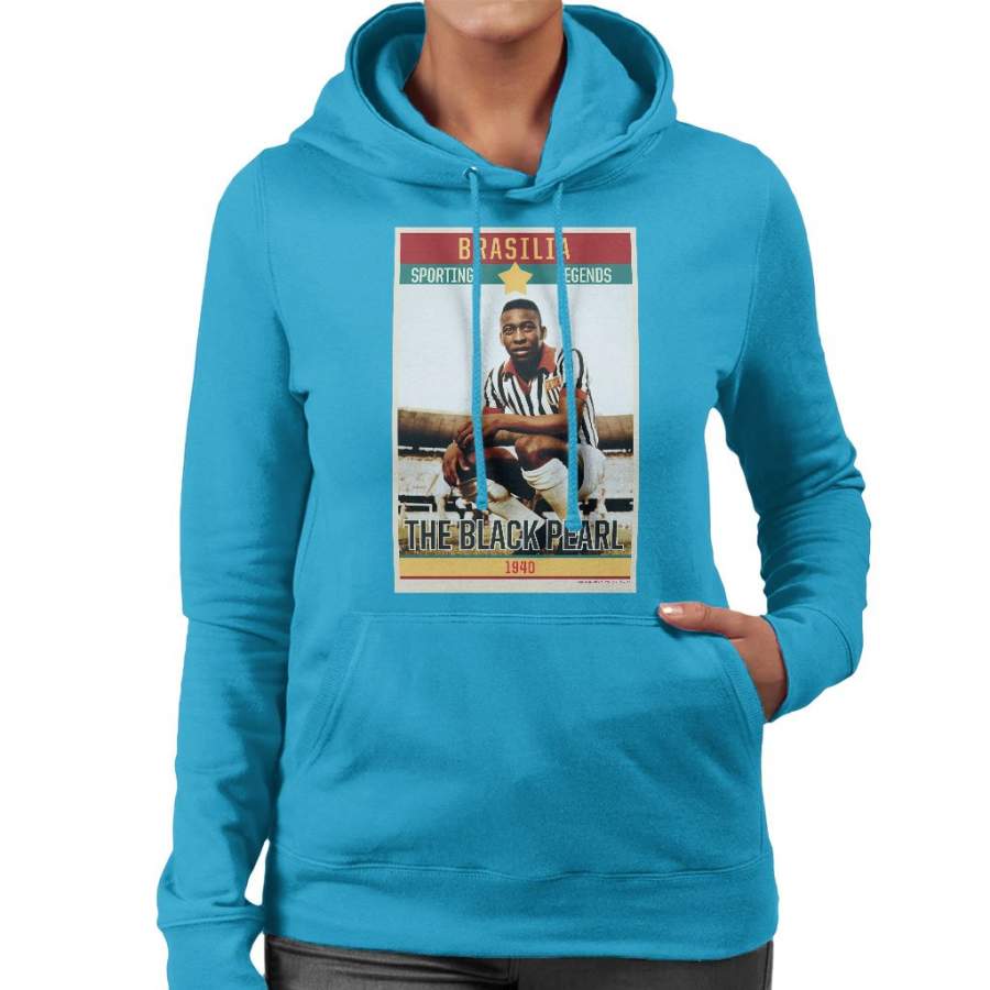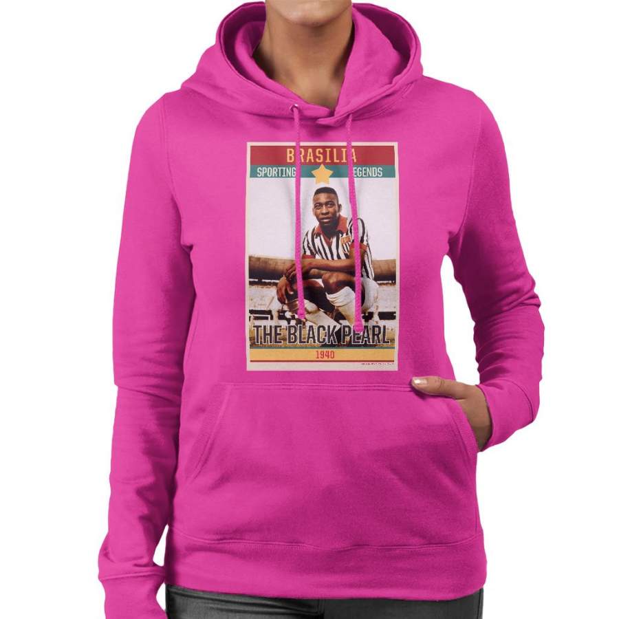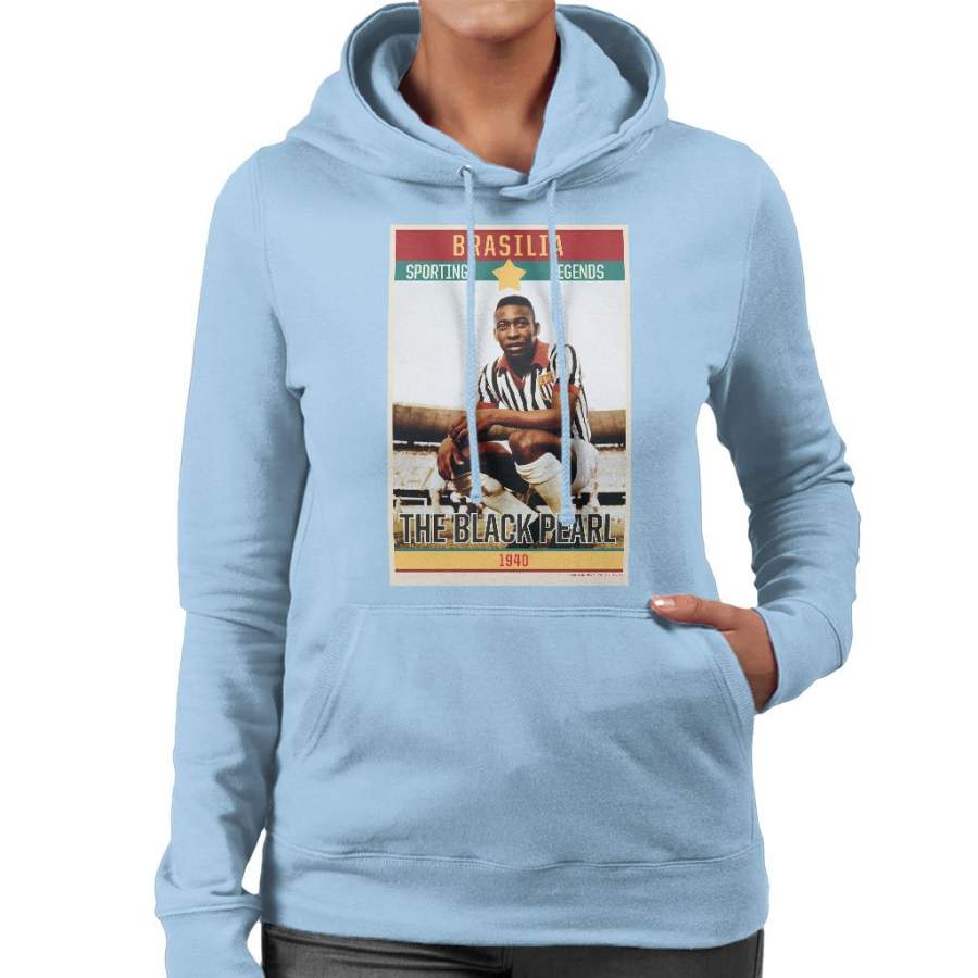 Sporting Legends Poster Brazil Pele The Black Pearl World Cup Women’s Hooded Sweatshirt