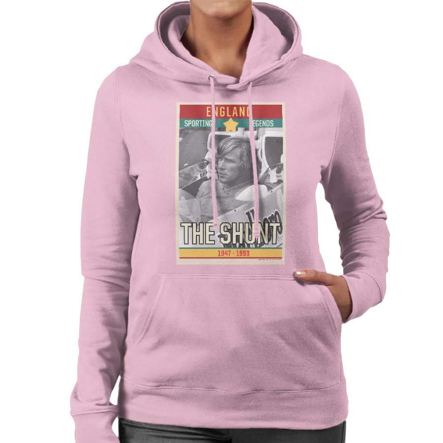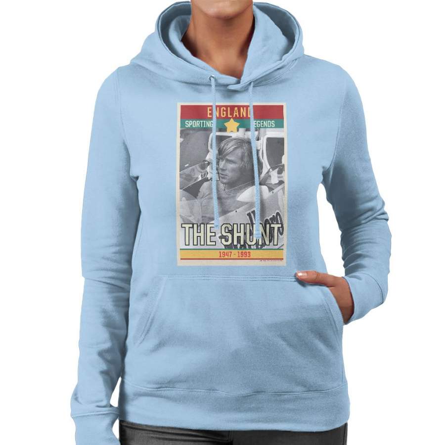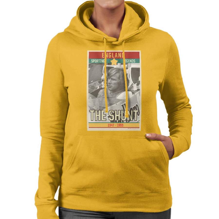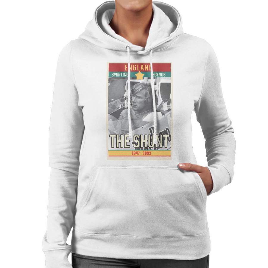 Sporting Legends Poster England James Hunt The Shunt 1947 To 1993 Women’s Hooded Sweatshirt