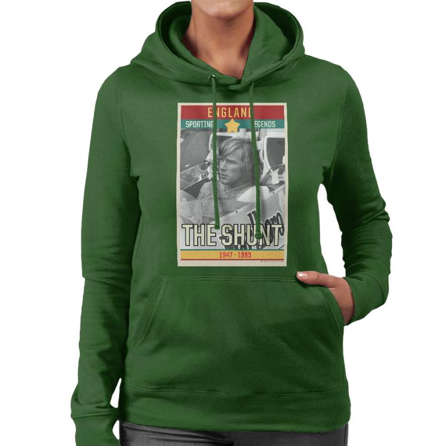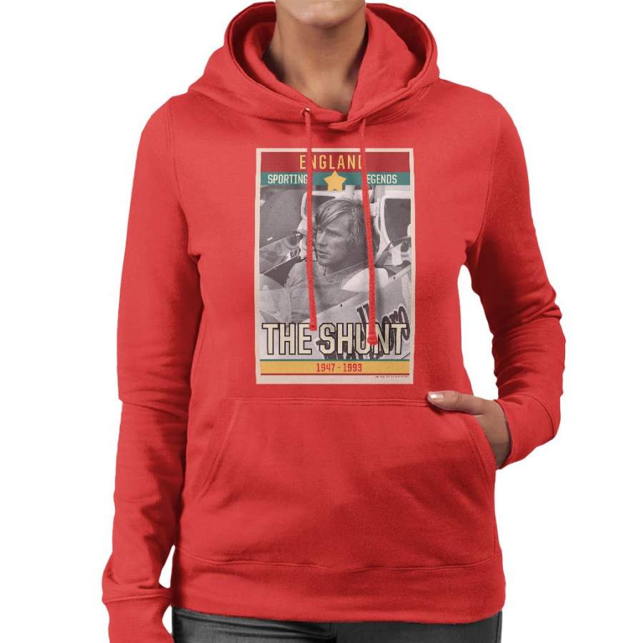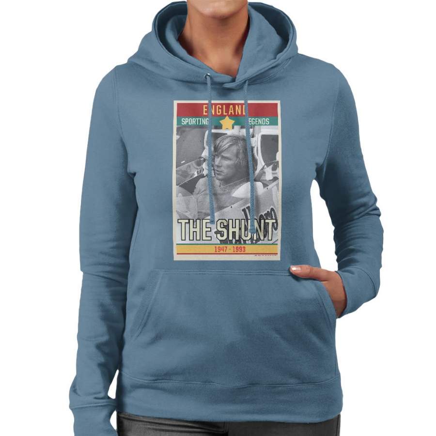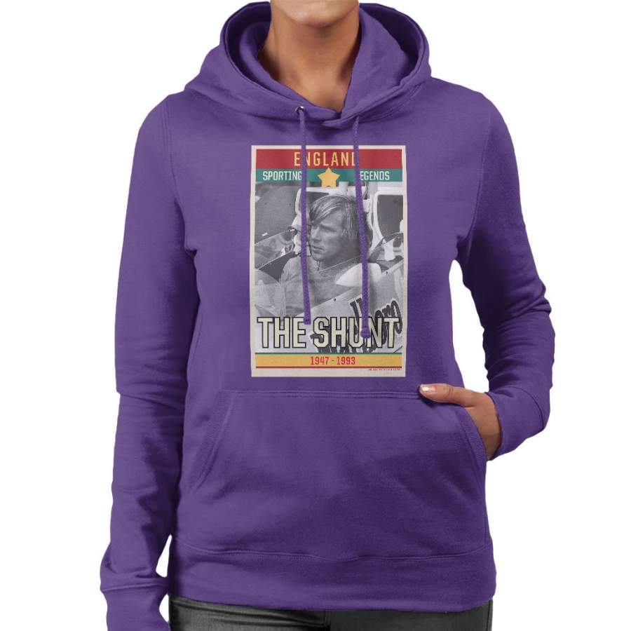 Sporting Legends Poster England James Hunt The Shunt 1947 To 1993 Women’s Hooded Sweatshirt