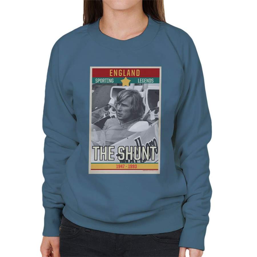 Sporting Legends Poster England James Hunt The Shunt 1947 To 1993 Women’s Sweatshirt