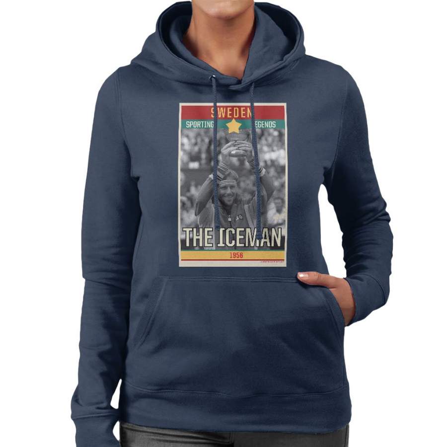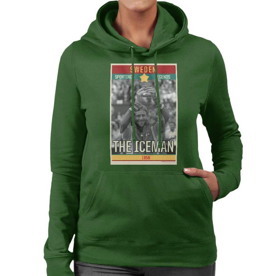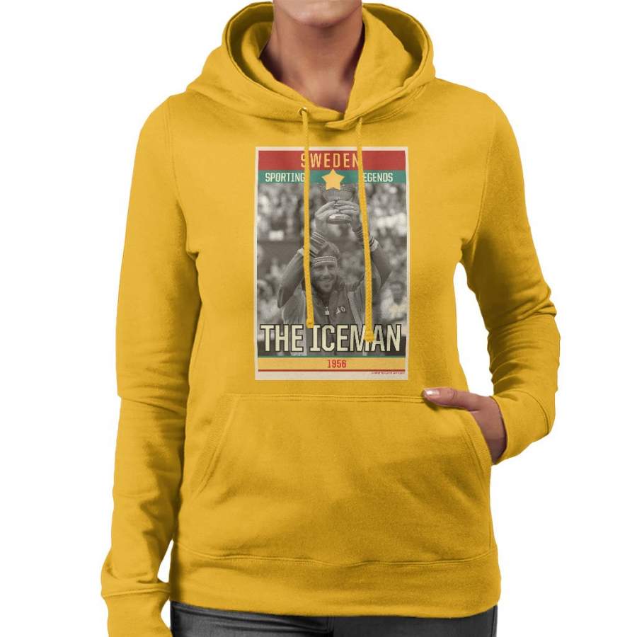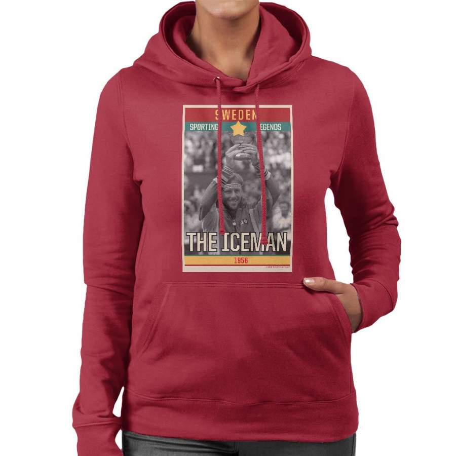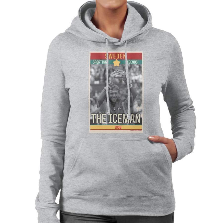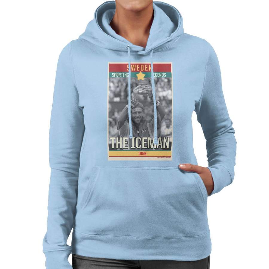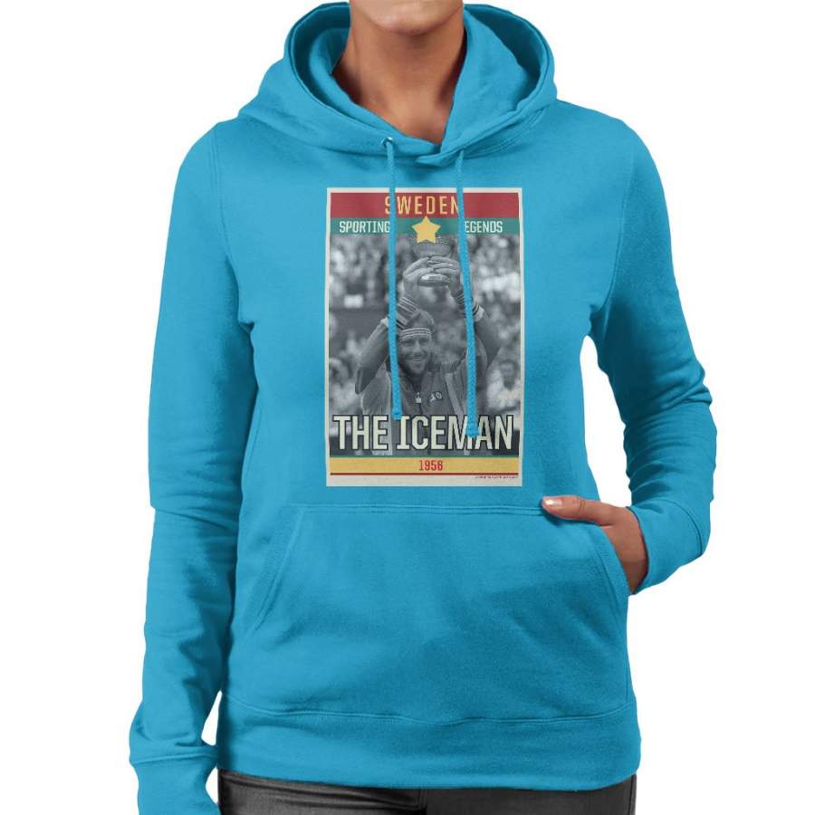 Sporting Legends Poster Sweden Bjorn Borg Tennis The Iceman 1956 Women’s Hooded Sweatshirt