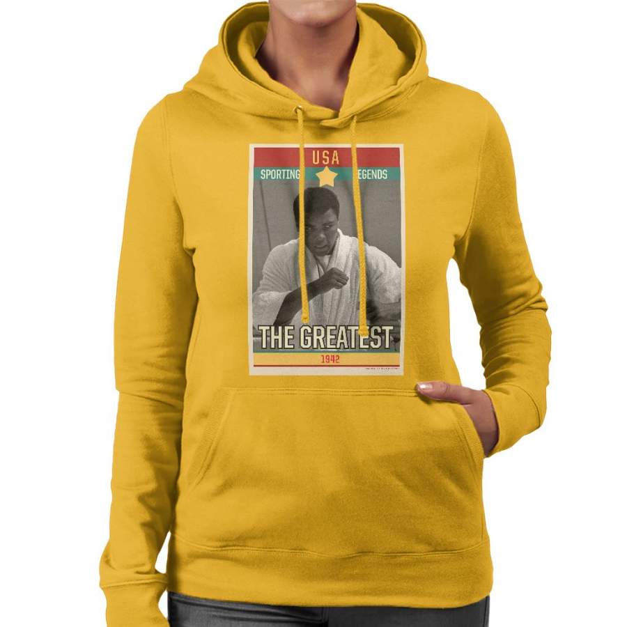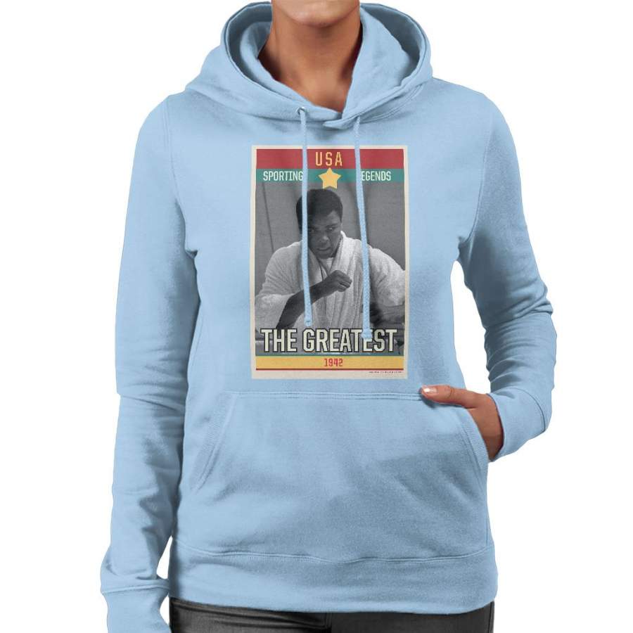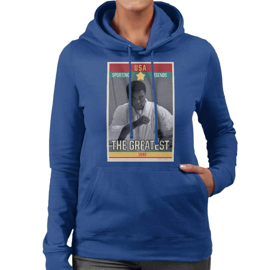 Sporting Legends Poster USA Muhammad Ali The Greatest 1942 Women’s Hooded Sweatshirt