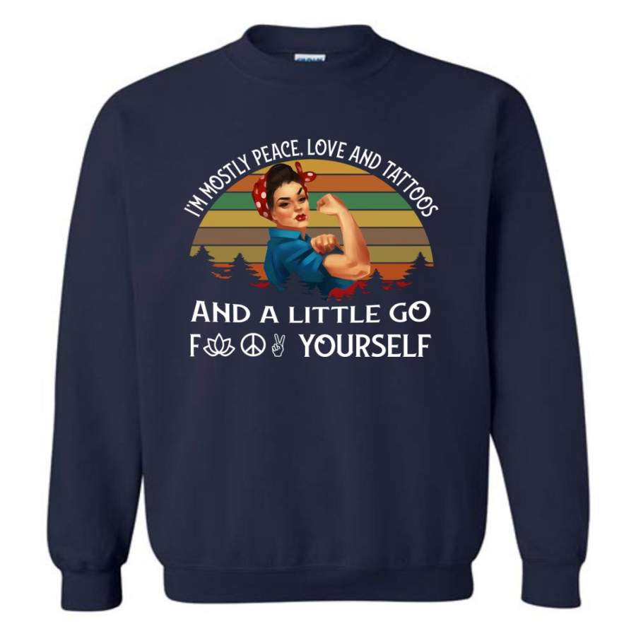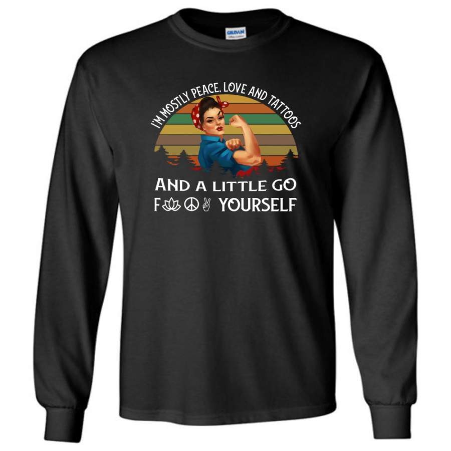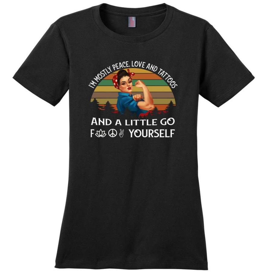 Strong girl mostly peace love tattoos and a little go fuck yourself vintage Tee shirt
