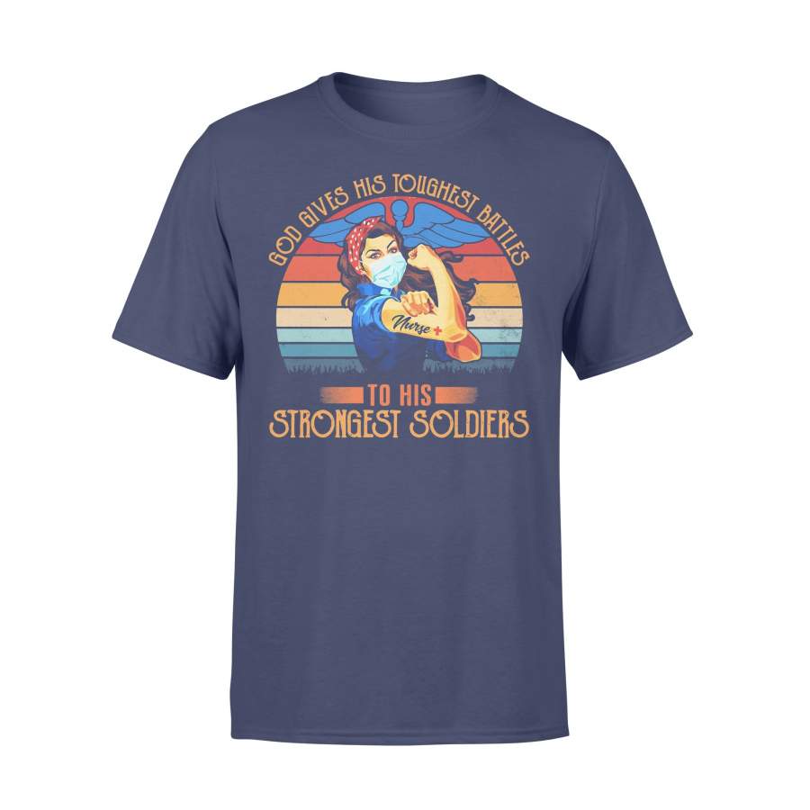Strong Nurse God Gives His Toughest Battles To His Strongest Soldiers Vintage T-Shirt