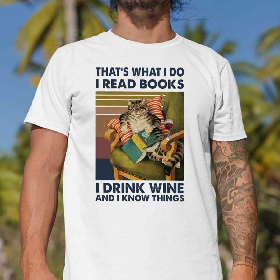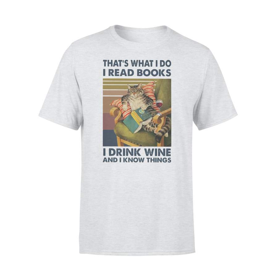 That’s What I Do I Read Books I Drink Wine And I Know Things Cat Lovers Vintage Retro T-shirt