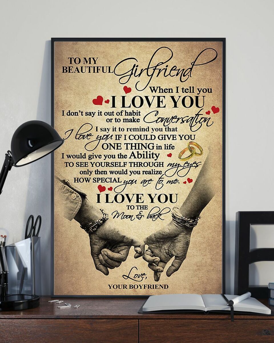 To My Beautiful Girlfriend Love You To The Moon And Back Hand Vertical Poster