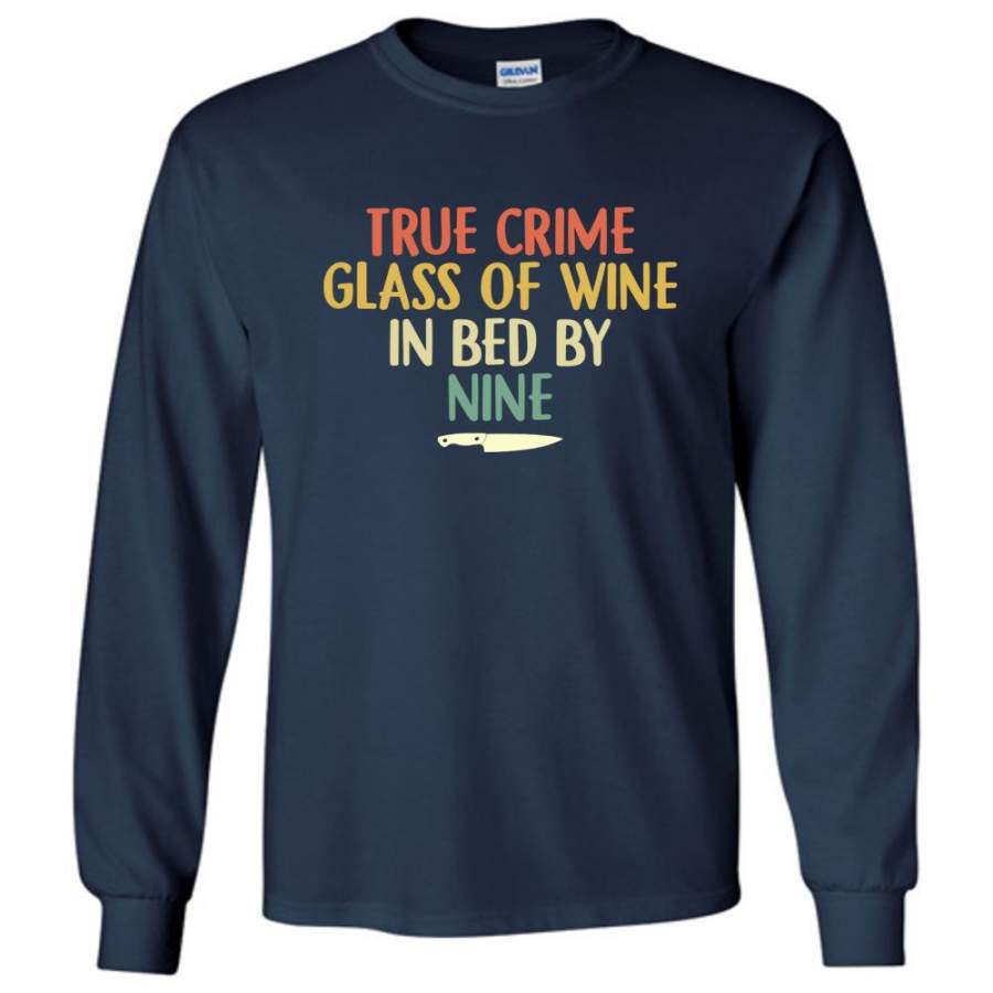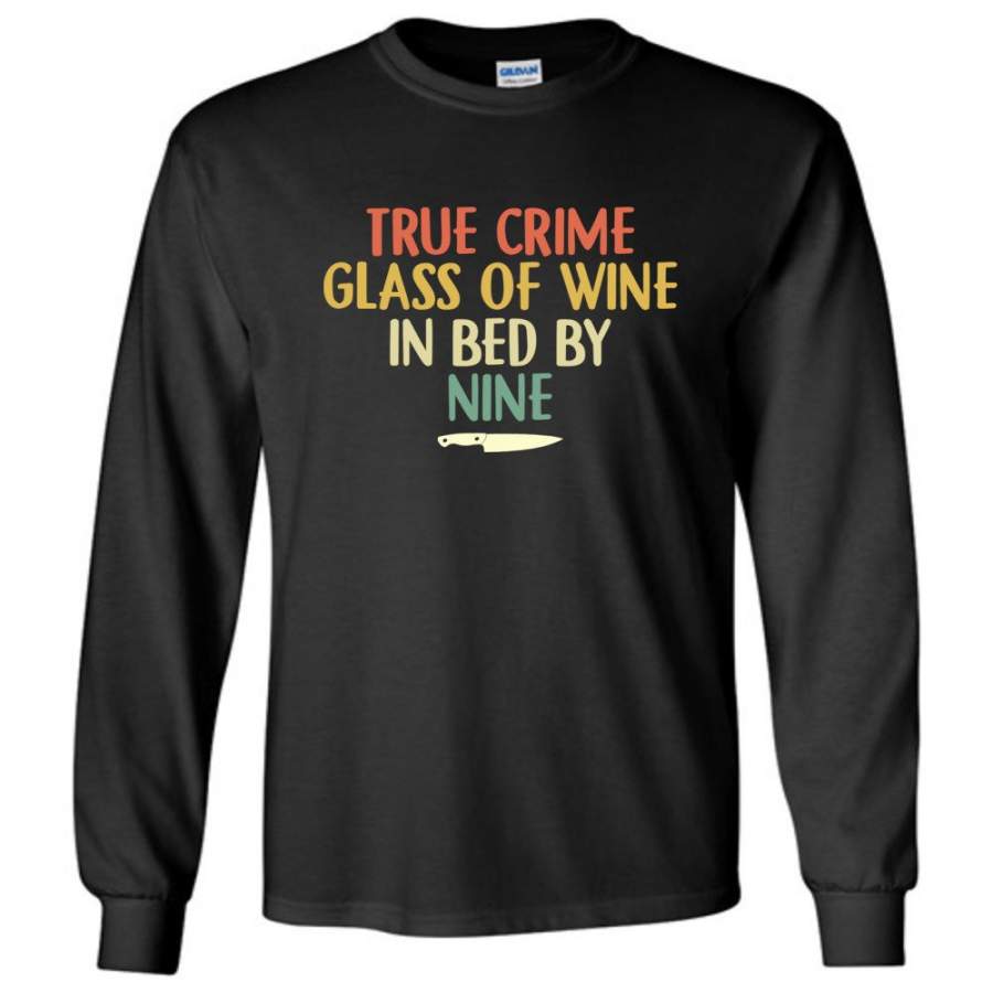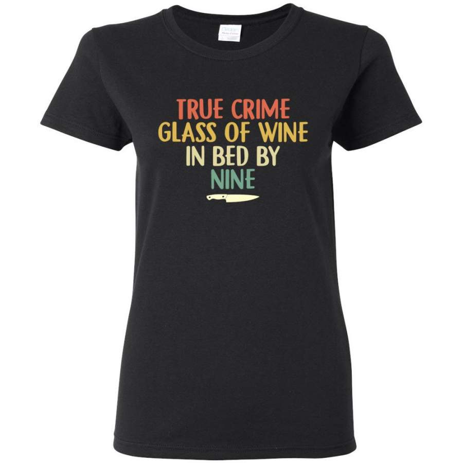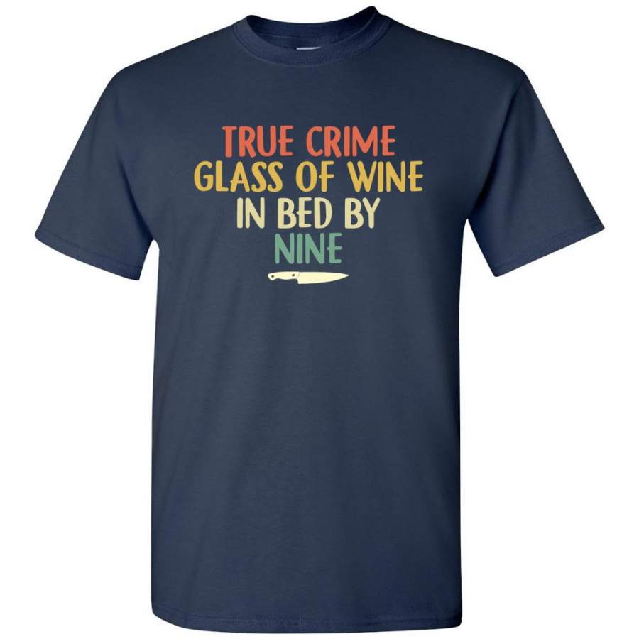 True Crime Glass Of Wine In Bed By Nine Knife Vintage Retro T Shirt
