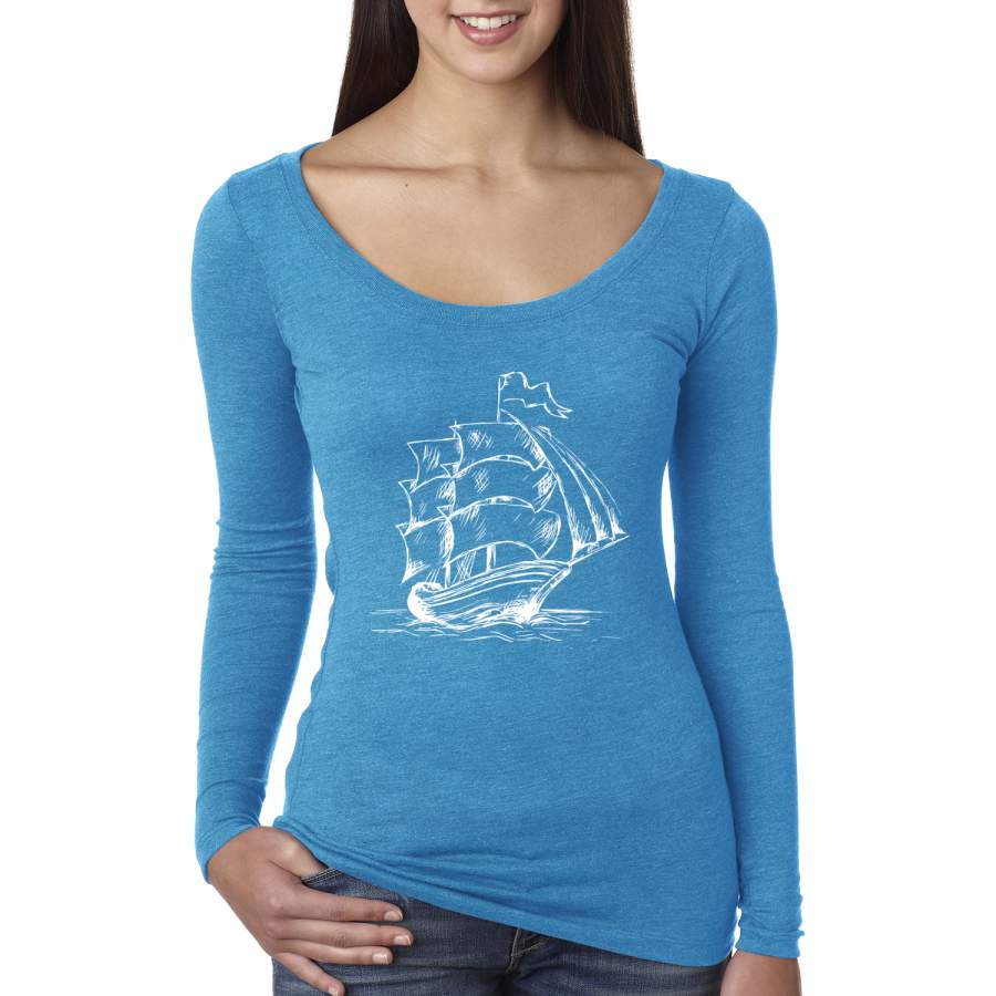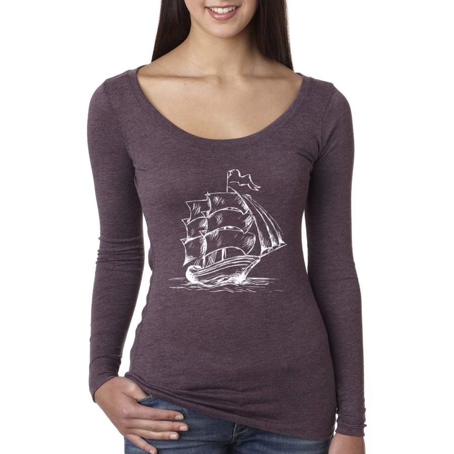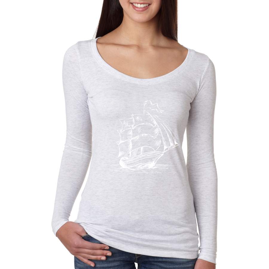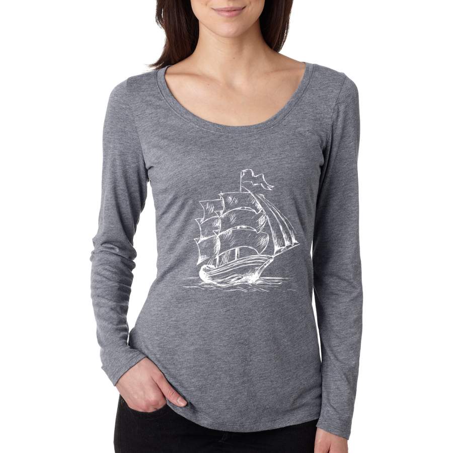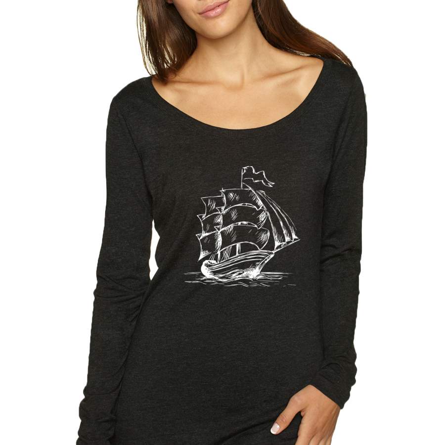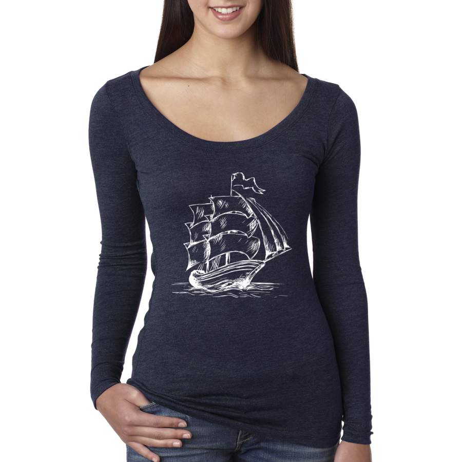 Vintage Pirate Ship Nautical Coastal Sea Ship Humor Womens Scoop Long Sleeve Top