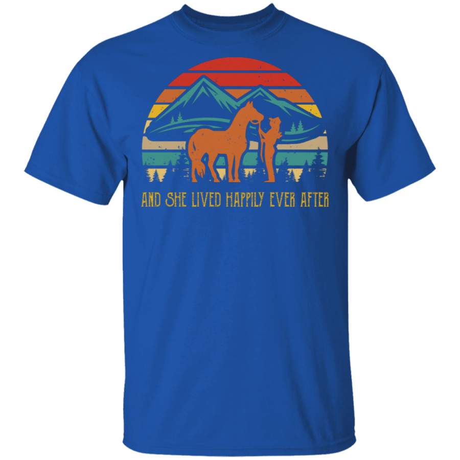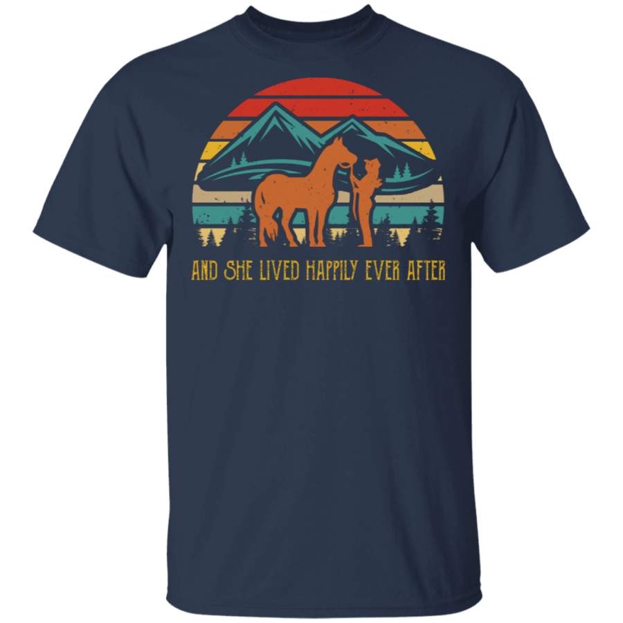 Vintage Retro And She Lived Happily Ever After Cute Girl And Horse Shirt Matching Horse Lover Fans Women Cowgirls Gifts T-Shirt