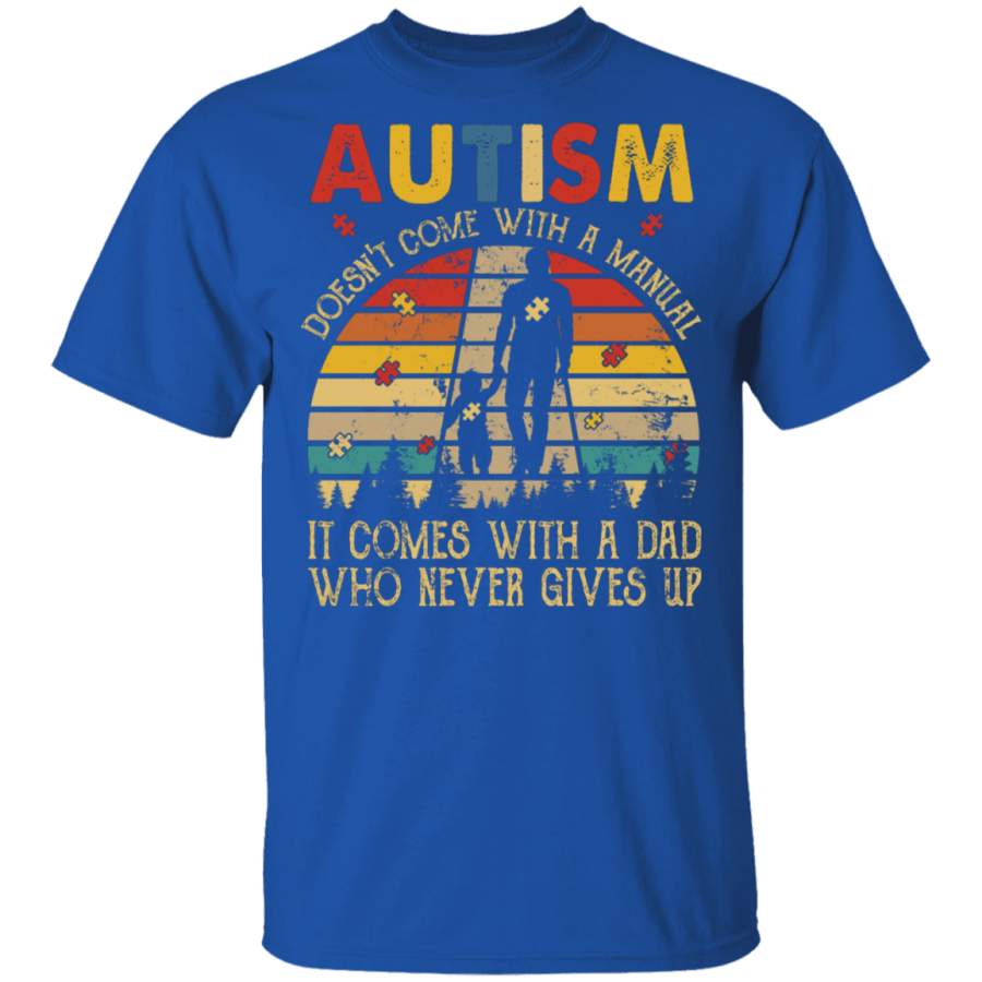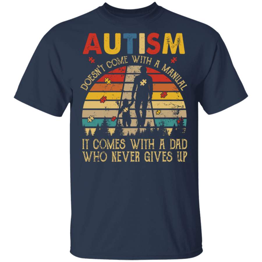 Vintage Retro Autism Doesn’t Come With A Manual It Comes With A Dad Who Never Gives Up Shirt Matching Autism Awareness Gifts T-Shirt