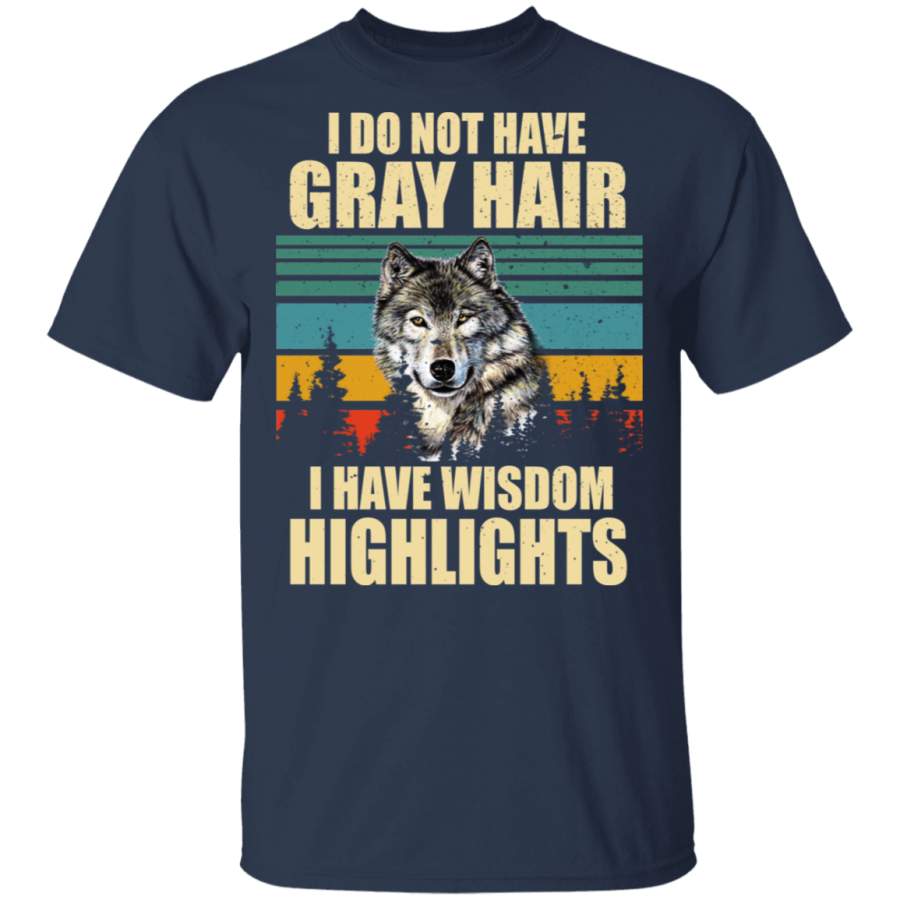 Vintage Retro I Don’t Have Grey Hair I Have Wisdom Highlights Cool Wolf Shirt Matching Men Women Wolf Lover Fans Gifts T-Shirt