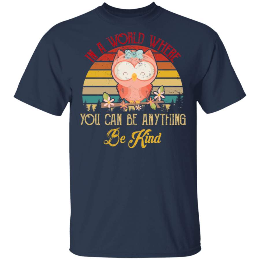 Vintage Retro In A World Where You Can Be Anything Be Kind Cute Owl Shirt Matching Kids Men Women Owl Lover Gifts T-Shirt