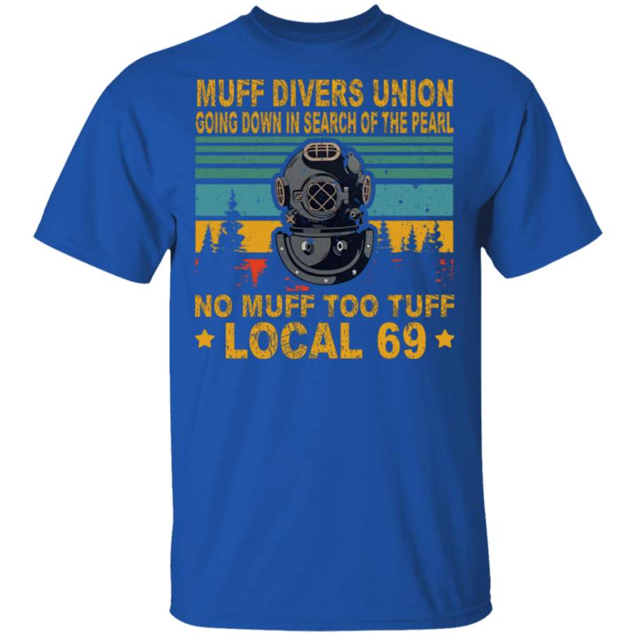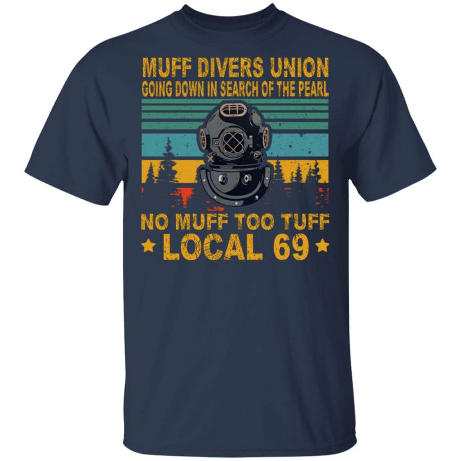 Vintage Retro Muff Divers Union Going Down In Search Of The Pearl No Muff Too Tuff Local 69 Diving Mask Shirt Matching Diver Gifts T-Shirt