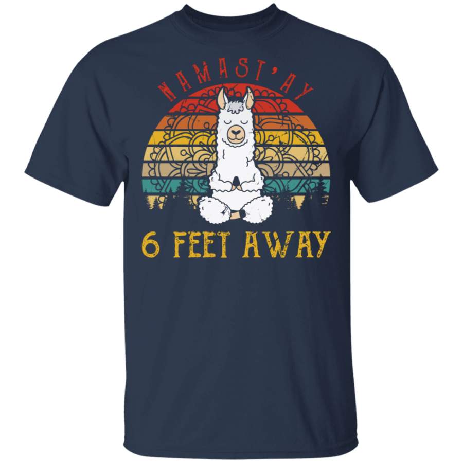 Vintage Retro Namast’ay 6 Feet Away Cute Meditating Llama Shirt Matching Llama Lover Meditation Yoga Gifts T-Shirt
