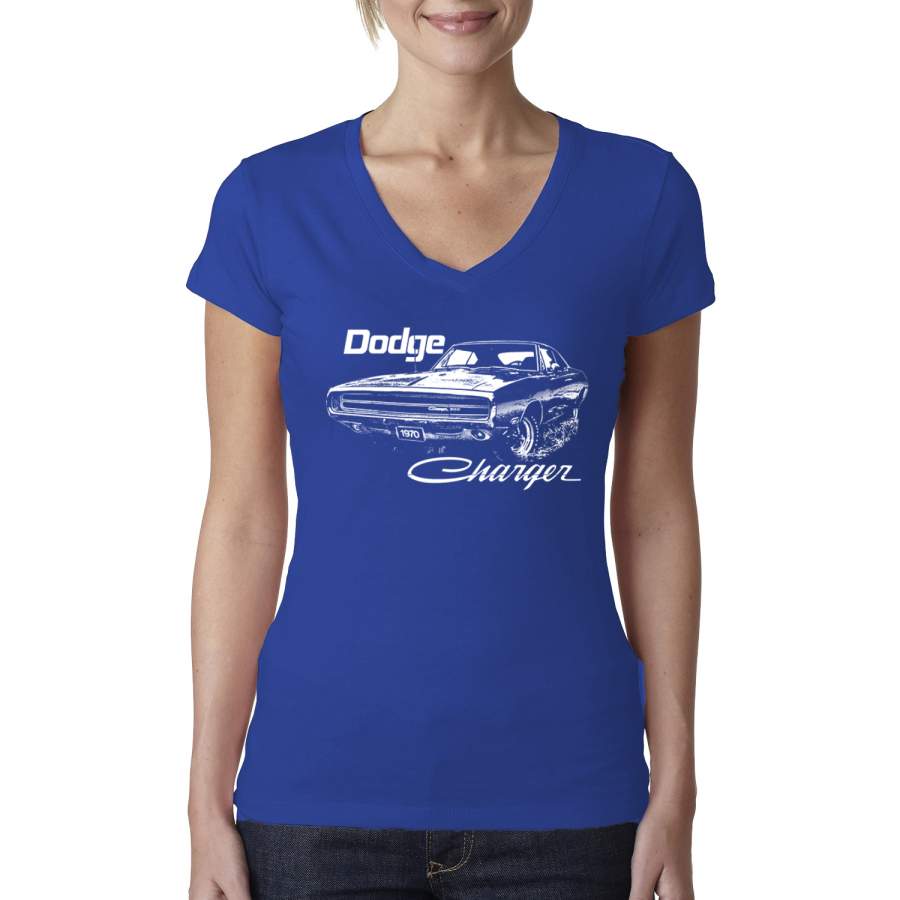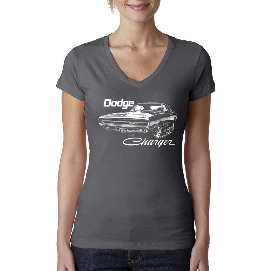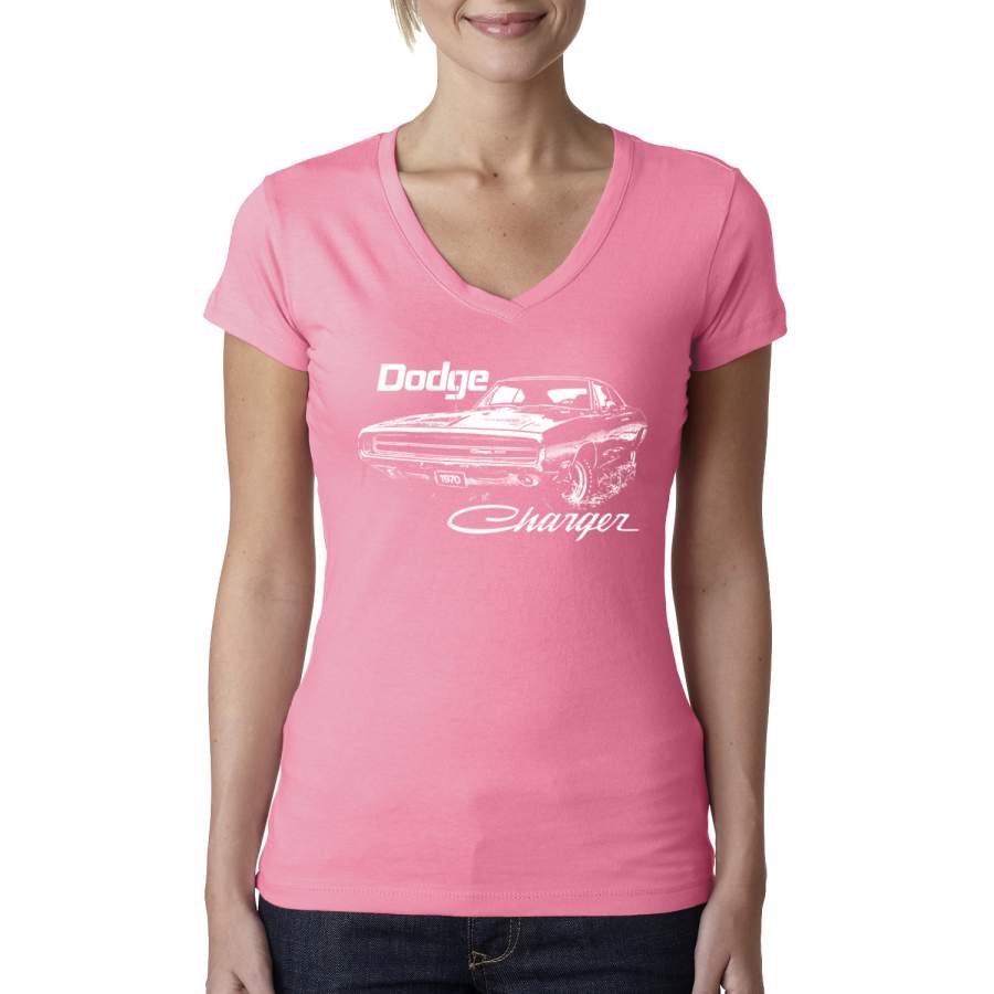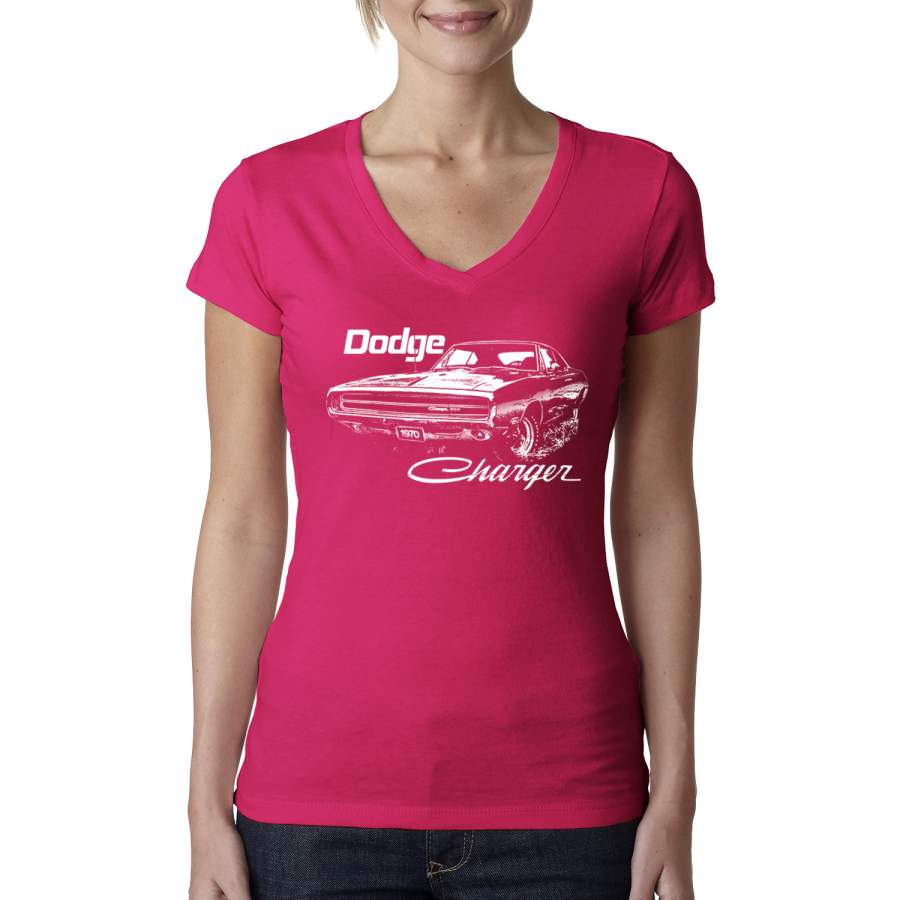 Vintage White 1970 Dodge Charger Racing Cars and Trucks Womens Junior Fit V-Neck Tee