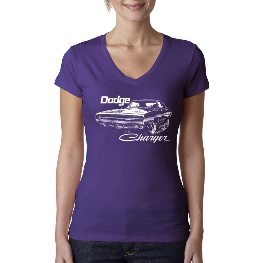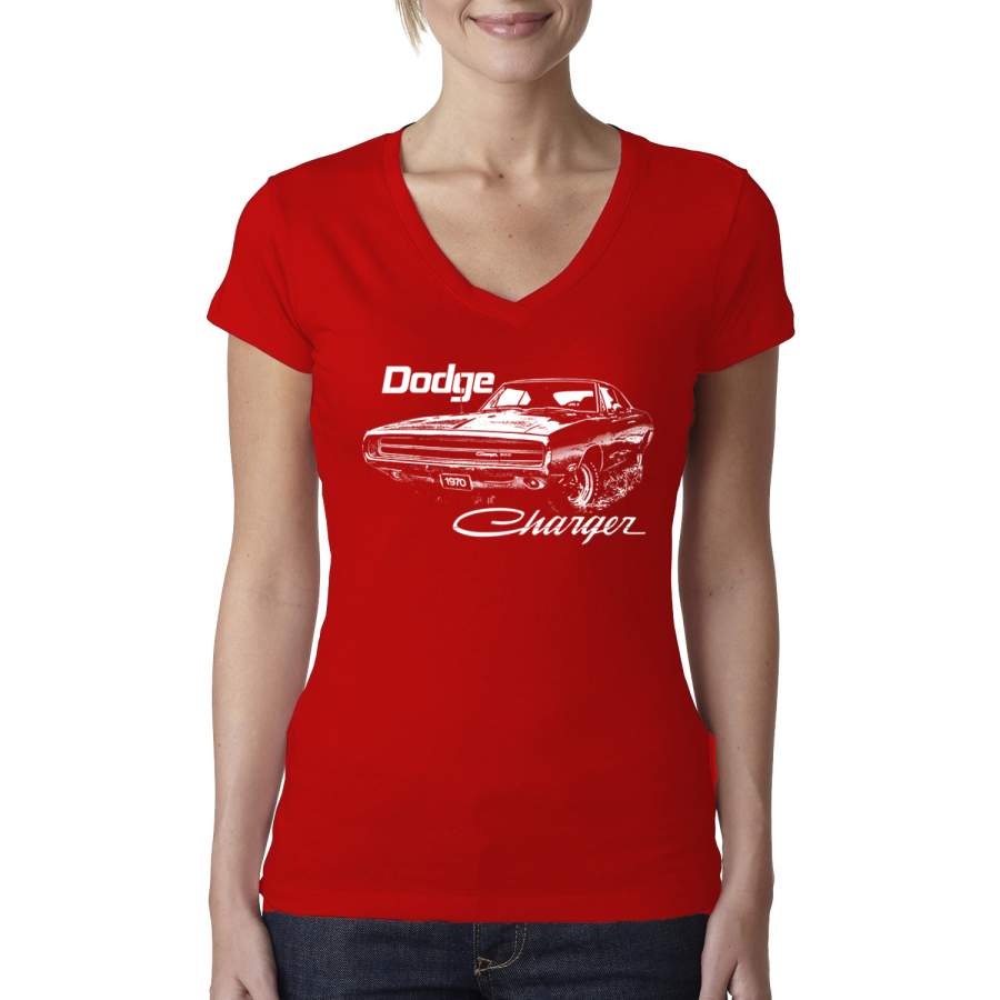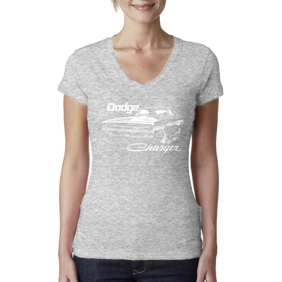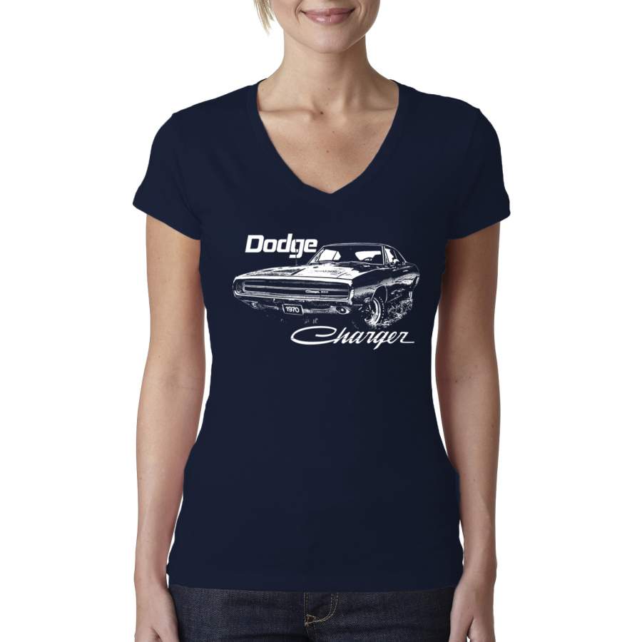 Vintage White 1970 Dodge Charger Racing Cars and Trucks Womens Junior Fit V-Neck Tee