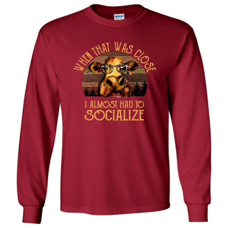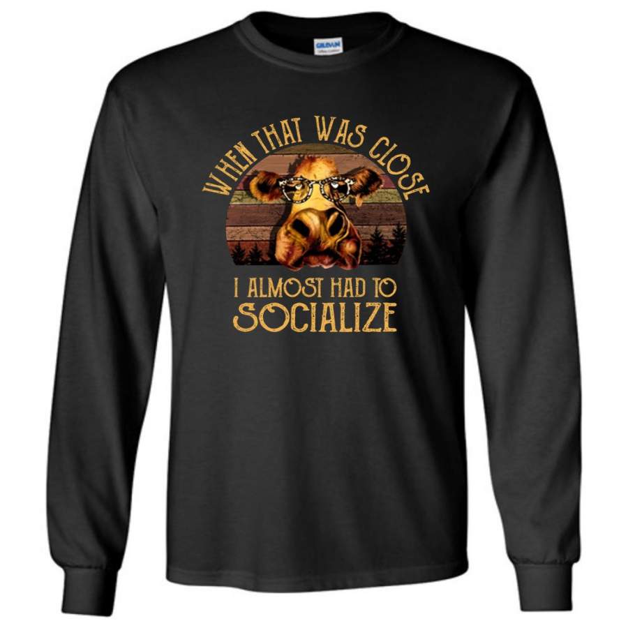 When that was close I almost had to socialize cow vintage retro tee shirt hoodie