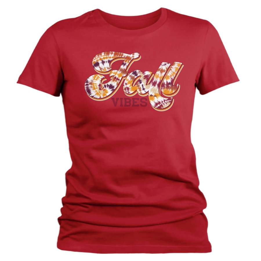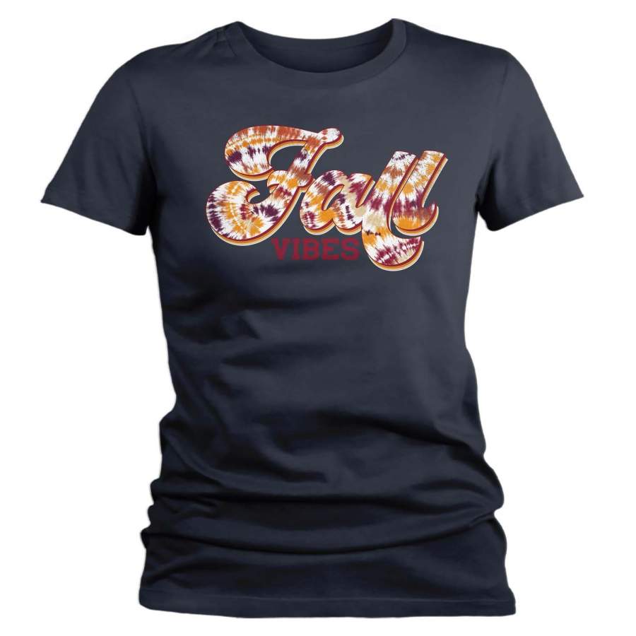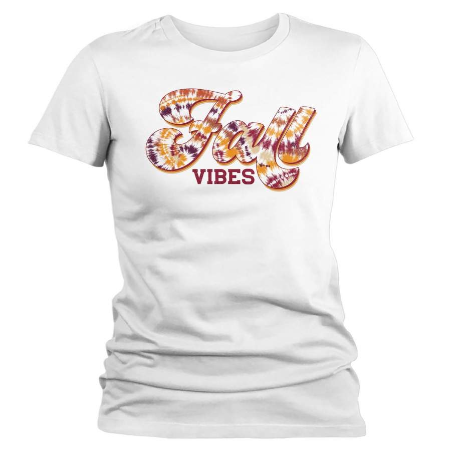 Women’s Fall Vibes T Shirt Retro Tie Dye Shirt Fall Shirt Vintage Fall Tee Boho Cute Fall Season Tee