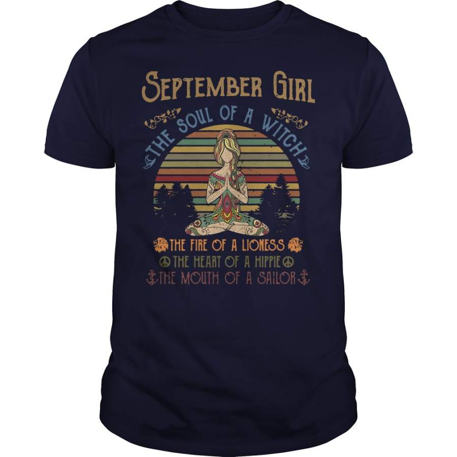 Yoga September girl the soul of a witch the fire of a lioness vintage T-Shirt